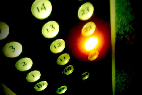 「エレベーターで21階ね。」