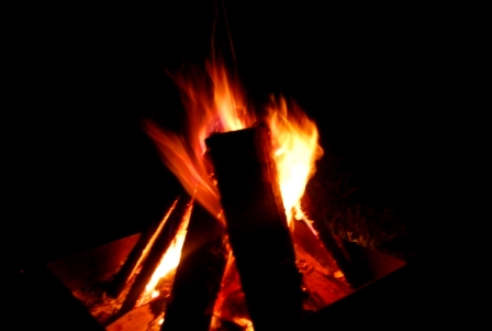 たき火を囲んで。