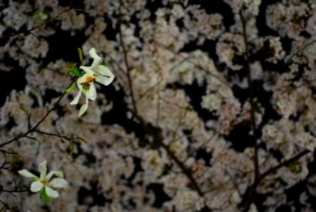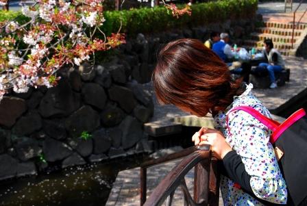 桜吹雪で二ヶ領用水には沢山の花びらが。