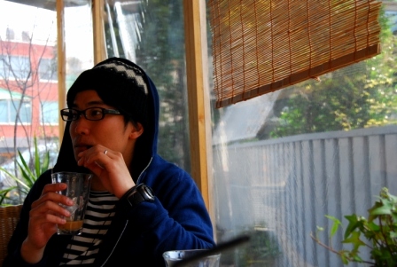 午後からのお花見の前に、 軽く腹ごしらえ。 近所のお気に入りcafeでまったり中・・・。 の、ぼーっとした俺を撮った犯人↓ してやったり顔。 自分ん家みたいなアットホームなところ。 ラナイ(バルコニーと同意らしい。)に日が差し ぽかぽかの64cafe+Ranai ミルク&シュガー入れもかわいい。