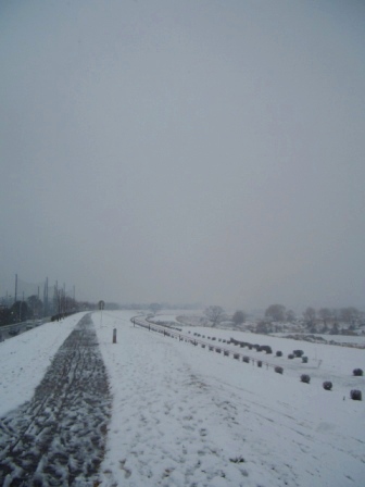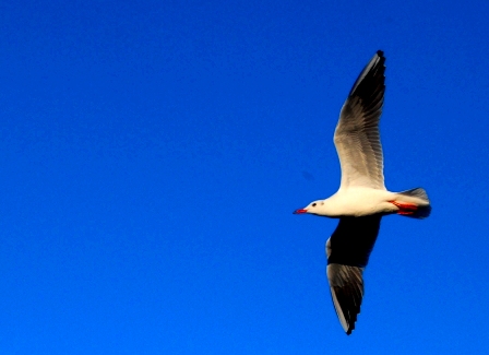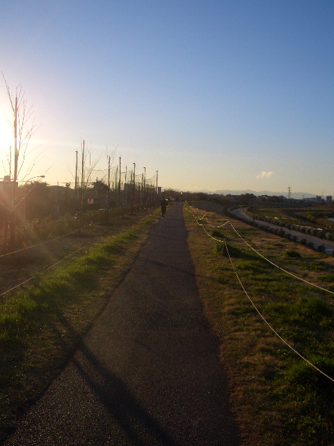 朝、自転車通勤、 かもめと並走。