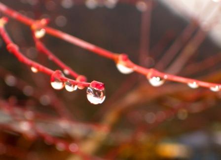 夜中。 ゲレンデから標高1000m降りたキャンプ場では まだ雪ではなく雨になった。 雨上がりの朝。 飾られた天然のオーナメント。