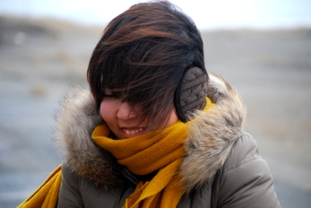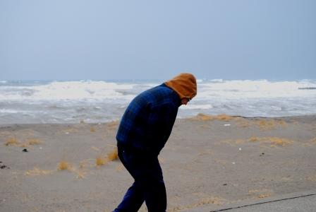 大荒れの日本海。 強風に凍える友人(地元っこ。) 笑うしかない、 火の国育ちのヨメ。