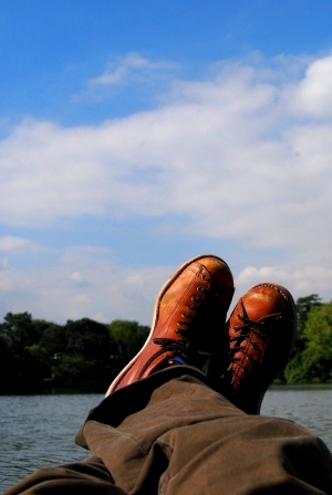 北の大地をカヌーで下る旅に憧れてる今日この頃。 こんな感じかなあ、と、 洗足池のボート上で、寝そべってみる。