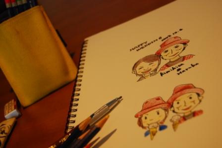 友人へのプレゼント用に、と。 その後、この2人をあと5人くらい書くことになる・・・。