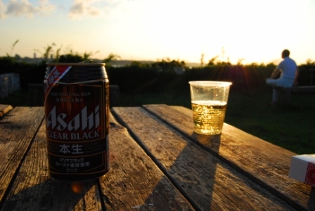 夕焼けを見ながらの一杯。 たまらん。 千葉・印旛沼