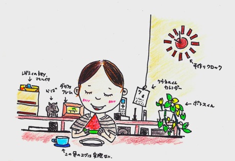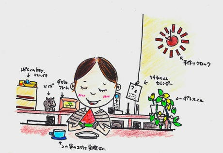 「食後のデザートをほおばるご機嫌にんぷ。」