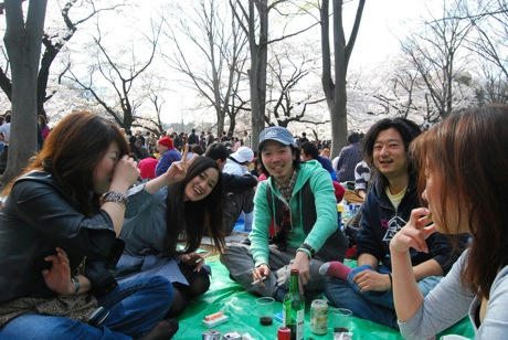 満開の井の頭公園にて高校の仲間と。