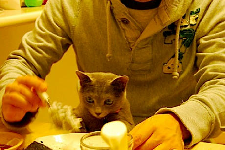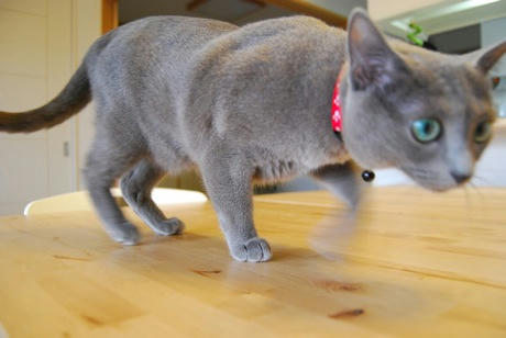 さっそく、テーブルの上をそそっと歩くコナちゃんにご挨拶。