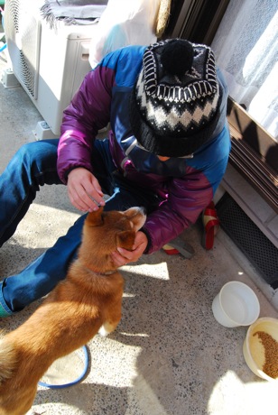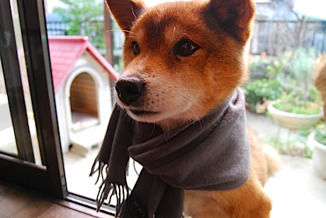 寒かろう〜と、マフラーを巻いてやるヨメ。