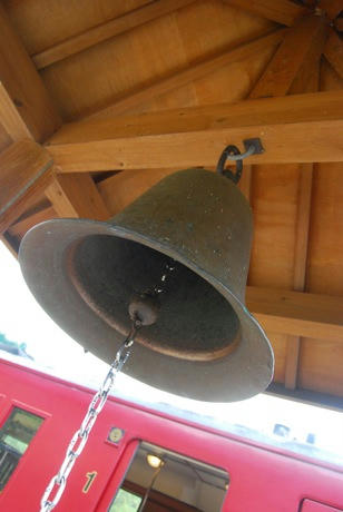 駅名にちなんで「幸せなる鐘」が。